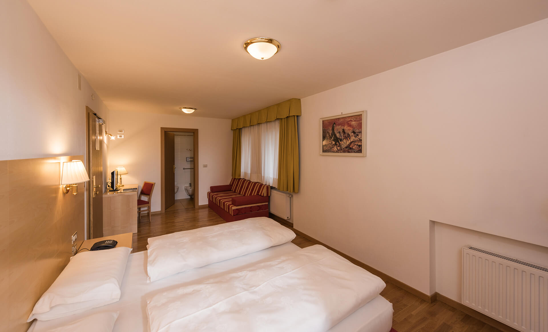 Durante il giorno il sole illumina le cime delle montagne che circondano l’Hotel Union segnando il passare delle ore. È questa meridiana naturale a ispirare il nome della camera matrimoniale classica, con pavimento in parquet, dotata di tutti i comfort. Una stanza semplice ed essenziale, perfetta per chi cerca comodità e praticità senza rinunciare al relax e alla bellezza dell'ambiente circostante.